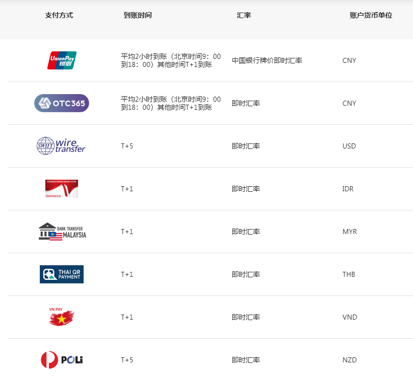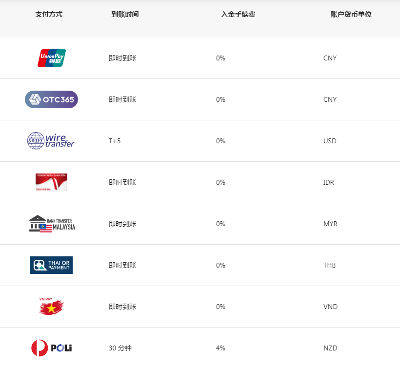 用便捷的出入金方式开始交易。无入金手续费,极速出金,平均2小时内到账